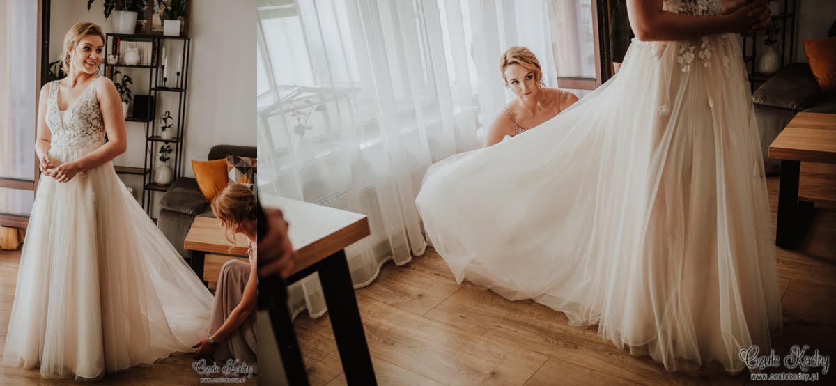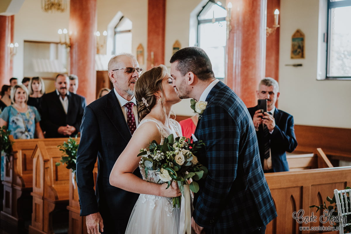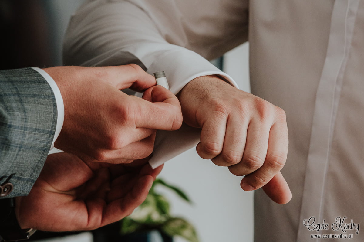 Piotr przygotowywał się ze swoim świadkiem oraz rodzicami, wszystko odbyło się zgodnie z tradycją (łącznie z błogosławieństwem), ale nie obyło się bez niespodzianki! W trakcie przygotowań, Piotr przeczytał przygotowany przez Aleksandrę list – nigdy nie dowiemy się, co było w nim napisane, jednak łzy i wzruszenie, którego byliśmy świadkami nie pozostawiały wątpliwości, że był to przekaz wyjątkowo prywatny i piękny. Listy miłosne w tak wspaniałym dniu, jak ten, to wyśmienity pomysł – pozwala to przypomnieć sobie to, co najlepsze w relacji ukochanych i z pozytywnym nastawieniem kroczyć niepewnymi ścieżkami tego, bądź co bądź, pełnego stresów i wyzwań dnia.