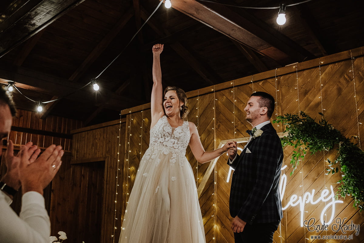 Za co można kochać Gajówkę Obręb? Za co można kochać wesela rustykalne? Za klimat! Ich magia polega na harmonijnym współgraniu ze sobą wszystkich kluczowych elementów: starannego wystroju, ciepłego światła, radosnej muzyki, pysznego jedzenia, sielskiej przestrzeni – to wszystko sprawia, że goście czują się jak u siebie, a ta atmosfera radości momentalnie udziela się Młodej Parze. Tak też było i tutaj. Dziękujemy Aleksandrze i Piotrowi, że mogliśmy gościć u nich na przyjęciu weselnym, w Gajówce Obręb, gdzie, jak tylko będzie ku temu sposobność, wrócimy bez chwili namysłu z wielką przyjemnością!